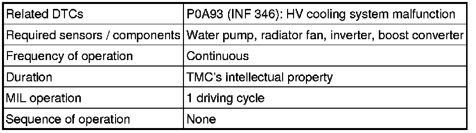 HYBRID / BATTERY CONTROL: HYBRID CONTROL SYSTEM: P0A93-346: Inverter Cooling System Performance