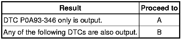 P0A93-346 may be set due to a malfunction which also causes DTCs in the preceding table to be set. In this case, first troubleshoot the output DTCs in the preceding table. Then, perform a test to attempt to reproduce the problems, and check that no DTCs are output.