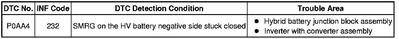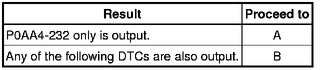 - P0AA4-232 may be output due to a malfunction which causes the DTCs in the table above to be output. In this case, first troubleshoot the output DTCs in the table above. Then, perform a reproduction test to check that no DTCs are output.