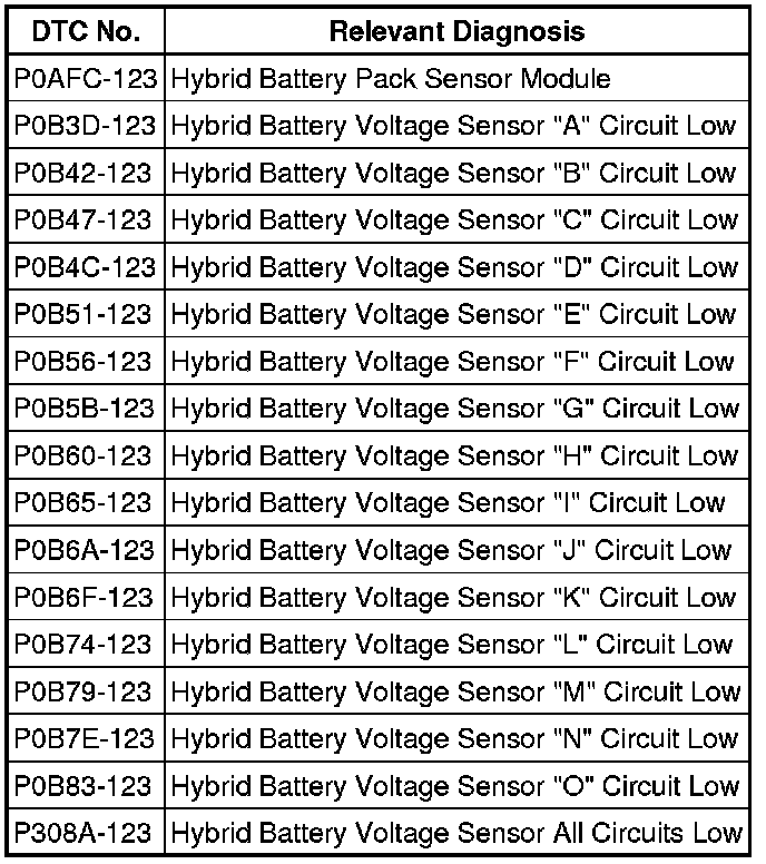 B -- GO TO DTC CHART Hybrid Battery System
