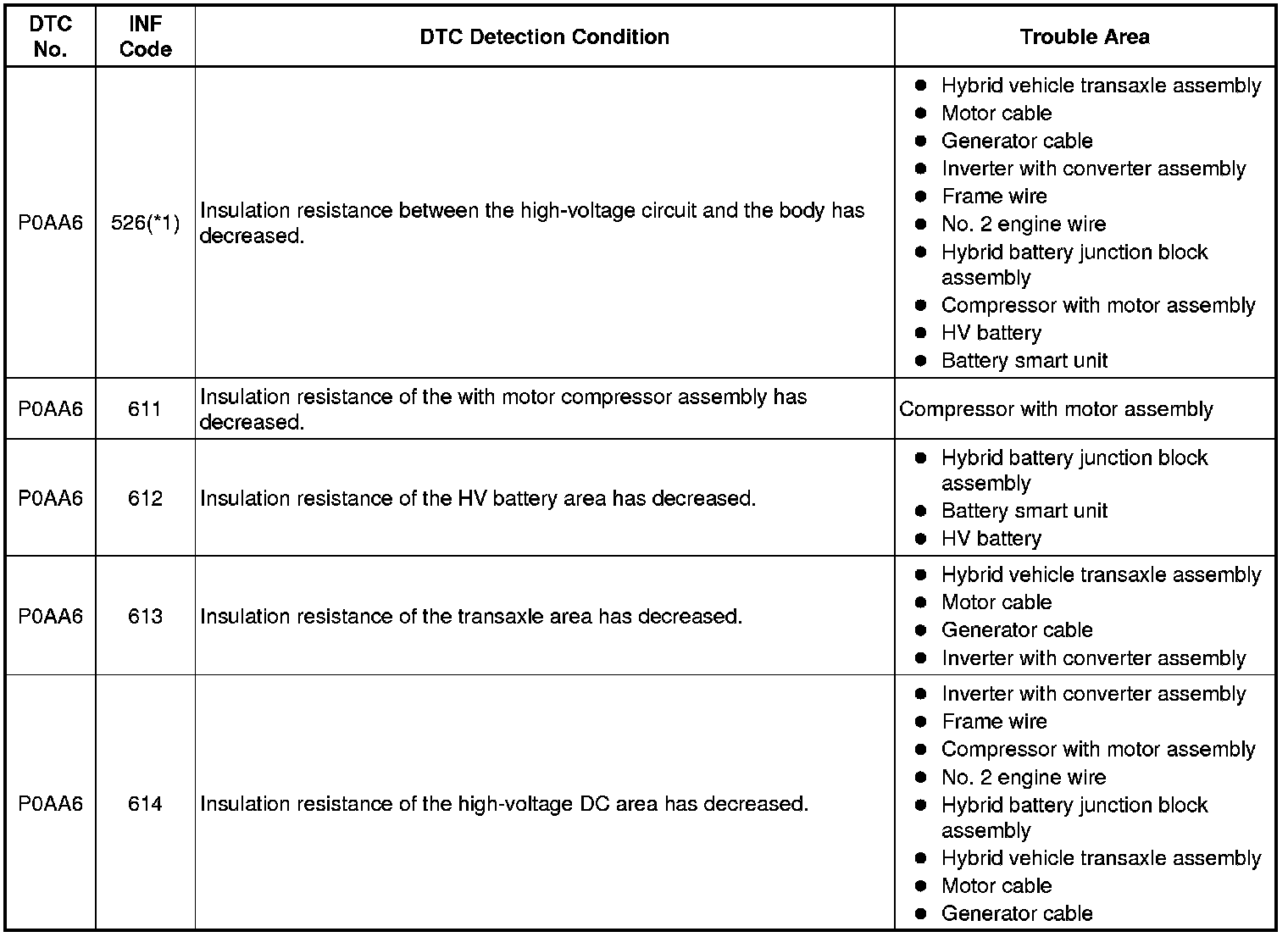 - *1: INF code 526 is stored together with P0AA6.