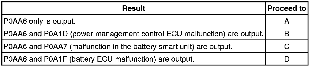 C -- GO TO DTC CHART (P0AA7) Hybrid Control System
