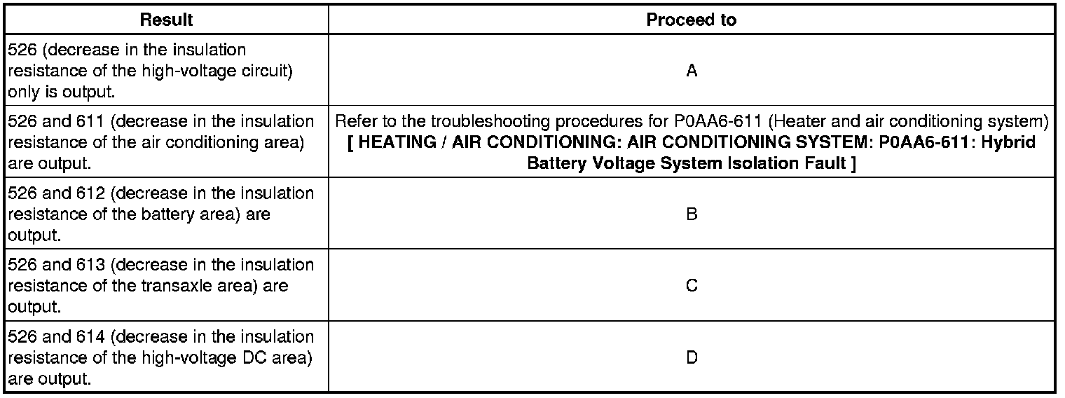 HYBRID / BATTERY CONTROL: HYBRID CONTROL SYSTEM: P0AA6-526, P0AA6-611, P0AA6-612, P0AA6-613, P0AA6-614: Hybrid Battery Voltage System Isolation Fault