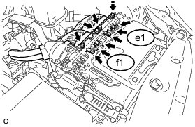 (d) Disconnect the motor cable e1 and generator cable f1 from the inverter with converter assembly.