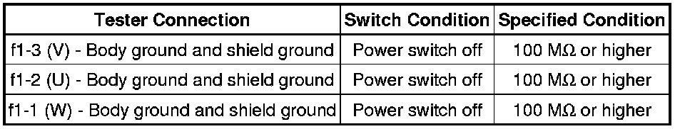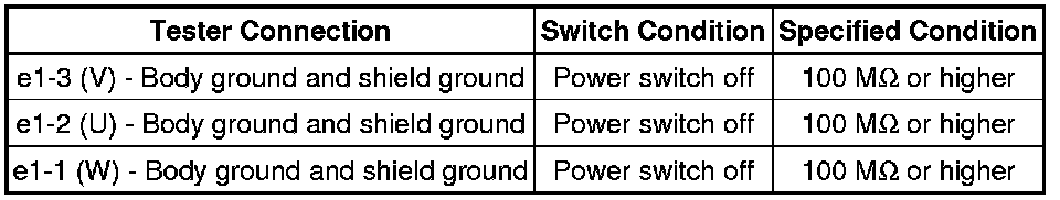 Perform this inspection with the motor cable, generator cable and No. 2 engine wire (air conditioning harness) disconnected from the inverter with converter assembly.