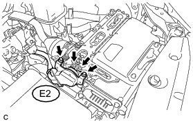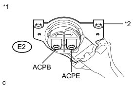 (b) Disconnect the No. 2 engine wire (air conditioning harness) E2 from the inverter with converter assembly.
