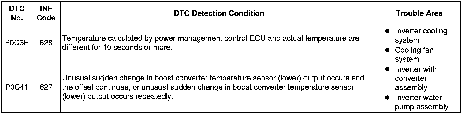 HYBRID / BATTERY CONTROL: HYBRID CONTROL SYSTEM: P0C3E-628, P0C41-627: DC / DC Converter Temperature Sensor "B" Range / Performance