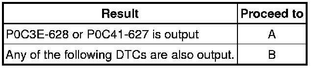 P0C3E-628 or P0C41-627 may be set due to a malfunction which also causes DTCs in the preceding table to be set. In this case, first troubleshoot the output DTCs in the preceding table. Then, perform a test to attempt to reproduce the problems, and check that no DTCs are output.