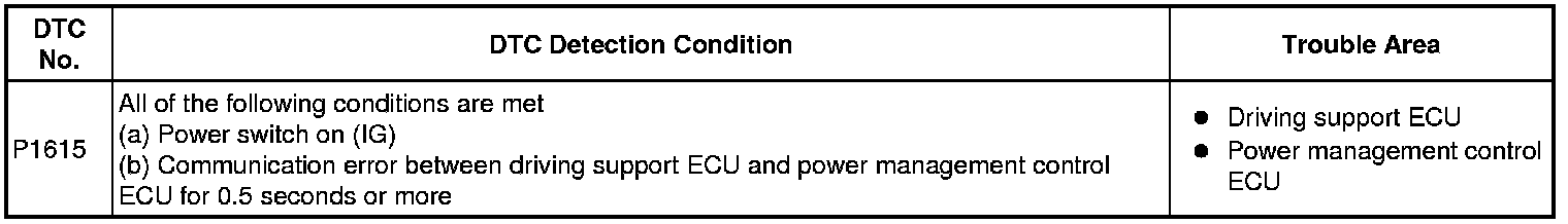 This DTC is stored when a communication error occurs between the driving support ECU and power management control ECU.
