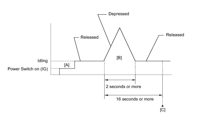 8. With the vehicle stationary, fully depress the accelerator pedal and quickly release it [B].