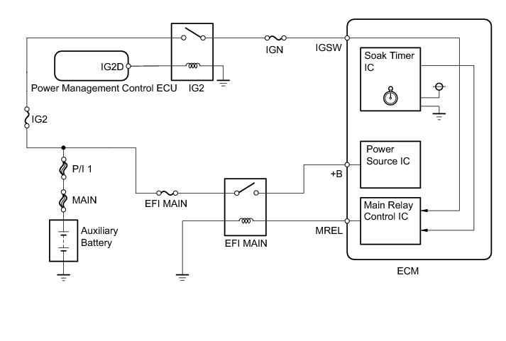 The soak timer operates after the power switch is turned off. When a certain amount of time has elapsed after turning the power switch off, the soak timer activates the ECM to perform malfunction checks witch can only be performed after the engine is stopped. The soak timer is built into the ECM.