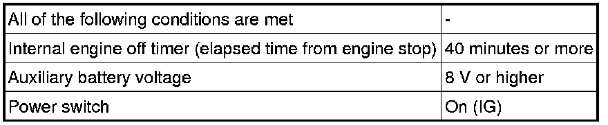 2. If the soak timer activates the ECM even though only a short amount of time has elapsed since the power switch was turned off, or if the soak timer does not activate the ECM even though a considerable amount of time has elapsed since the power switch was turned off, the ECM determines that the soak timer is malfunctioning, illuminates the MIL and stores a DTC the next time the power switch is turned on (IG).