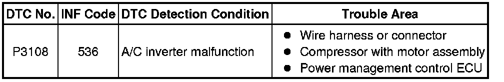 HYBRID / BATTERY CONTROL: HYBRID CONTROL SYSTEM: P3108-536: Lost Communication with A/C System Control Module