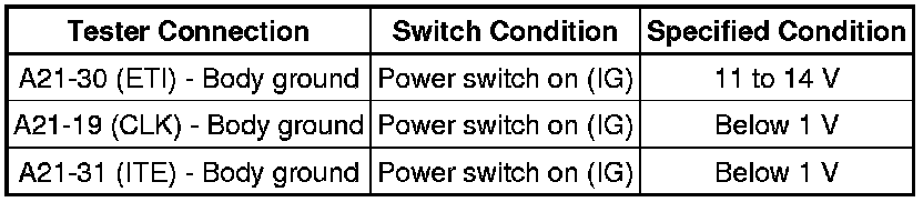 Turning the power switch on (IG) with the power management control ECU connector disconnected causes other DTCs to be stored. Clear the DTCs after performing this inspection.