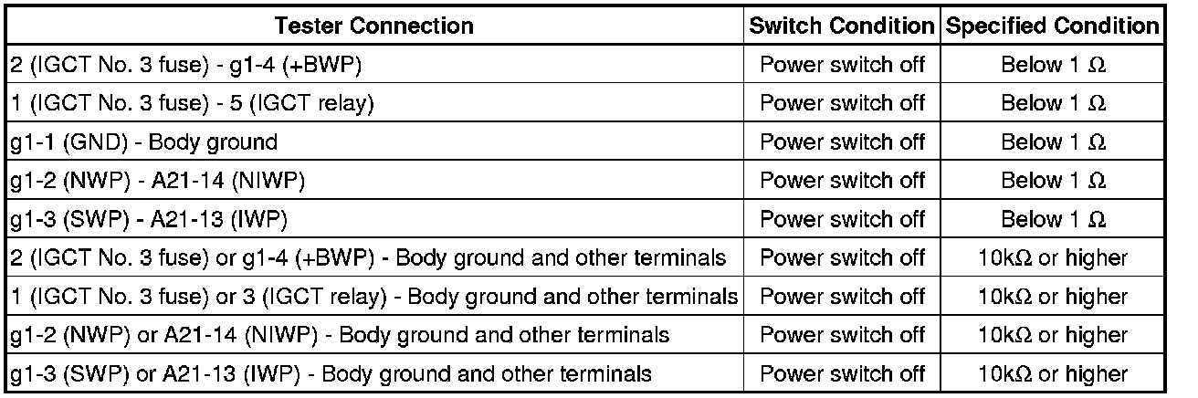 (a) Disconnect connector g1 from the inverter water pump assembly.