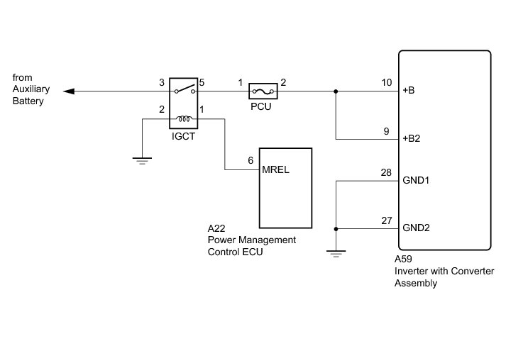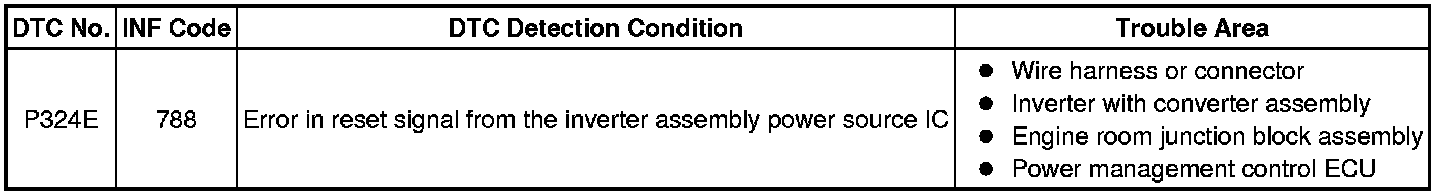 If the inverter with converter assembly (MG ECU) is reset due to a problem with the power source in the inverter, the power management control ECU (HV CPU) will set this DTC.