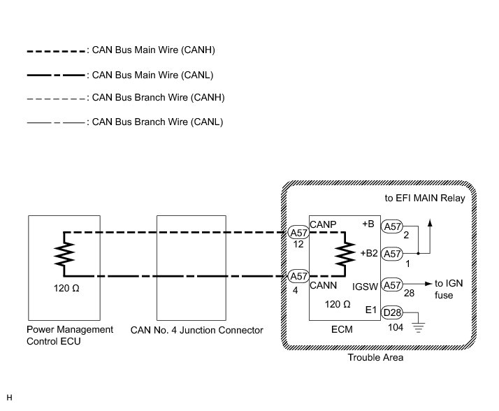 2. CHECK CAN BUS WIRE FOR DISCONNECTION (ECM MAIN WIRE/POWER MANAGEMENT BUS)