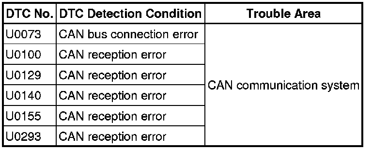 These DTCs are stored when a malfunction occurs in the CAN communication circuit.