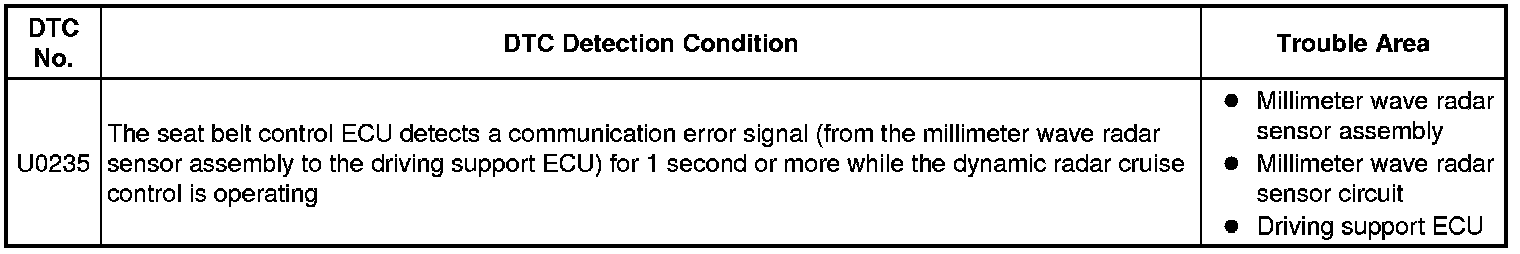 CRUISE CONTROL: DYNAMIC RADAR CRUISE CONTROL SYSTEM: U0235: Lost Communication with Cruise Control Front Distance Range Sensor