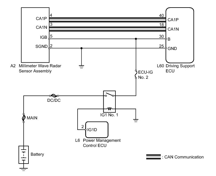 NG -- REPAIR OR REPLACE HARNESS OR CONNECTOR (MILLIMETER WAVE RADAR SENSOR ASSEMBLY - IG1 NO. 1 RELAY)