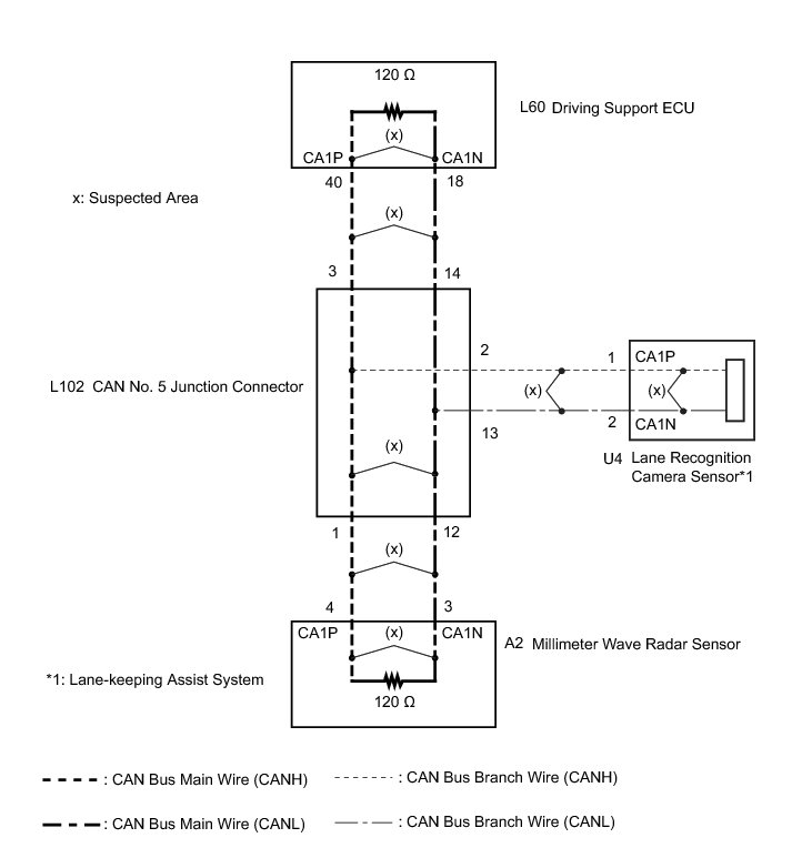 NG -- REPAIR OR REPLACE CAN BUS WIRE (LANE RECOGNITION CAMERA SENSOR BRANCH WIRE)