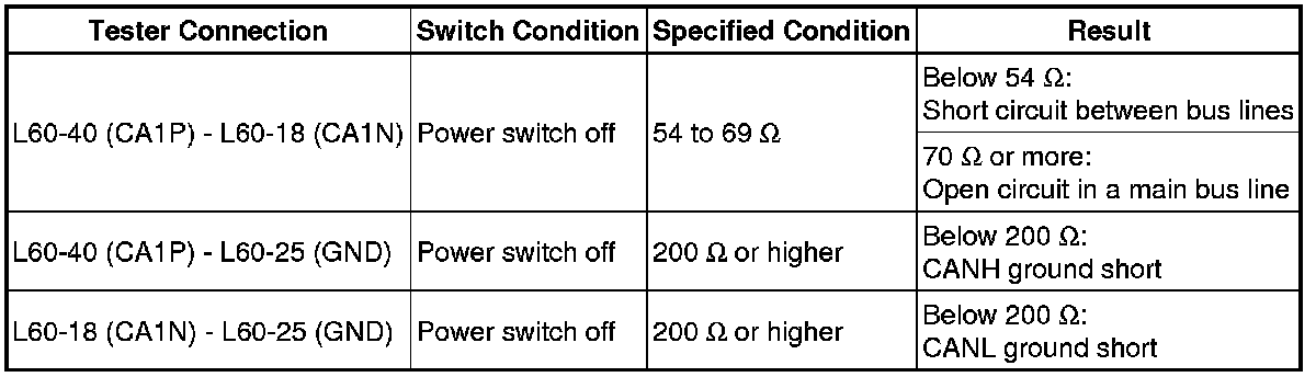* It is only necessary to perform the inspection in the above table for the result (short circuit) that was obtained in the Check CAN Bus Wire inspection.