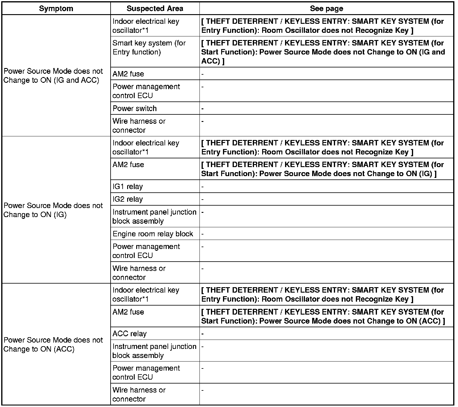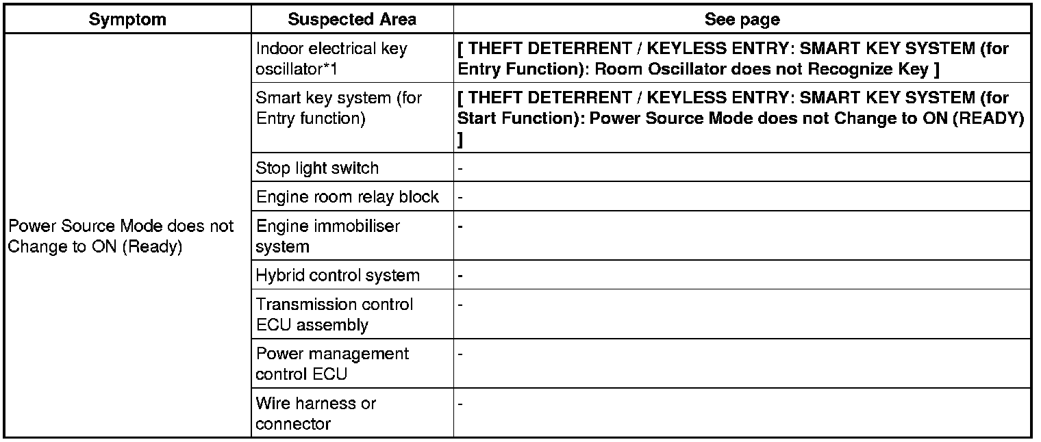 THEFT DETERRENT / KEYLESS ENTRY: SMART KEY SYSTEM (for Start Function): PROBLEM SYMPTOMS TABLE