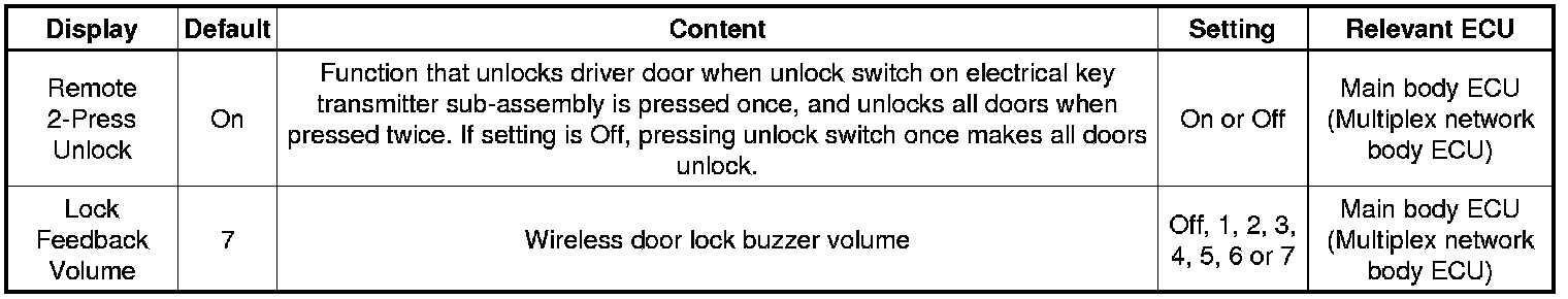 (d) Enter the following menus: Body Electrical / Main Body or Illuminated Entry / Utility / Customize.