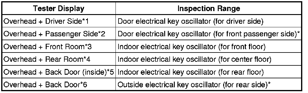 * *2: Perform the same inspection above for the door electrical key oscillator (for front passenger side).