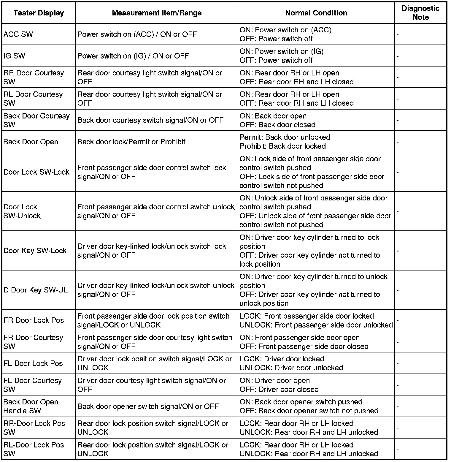 Using the Techstream to read the Data List allows the values or states of switches, sensors, actuators and other items to be read without removing any parts. This non-intrusive inspection can be very useful because intermittent conditions or signals may be discovered before parts or wiring is disturbed. Reading the Data List information early in troubleshooting is one way to save diagnostic time.