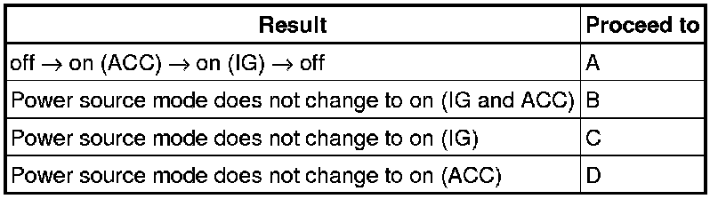 D -- GO TO OTHER FLOW CHART (Power Source Mode does not Change to ON (ACC)) Power Source Mode does not Change to ON (ACC)