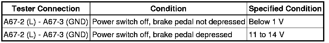 (a) Disconnect the A67 connector from the stop light switch assembly.