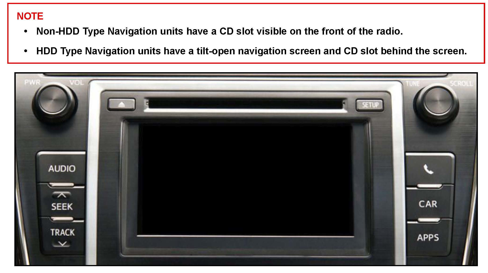 Use the following procedures to check and/or update the software version of Entune / Navigation for Non-HDD Type units.