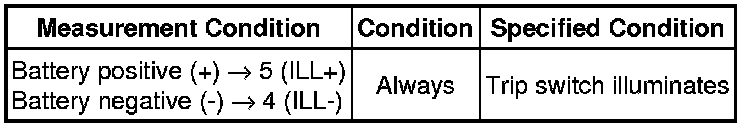 (b) Apply battery voltage from the wire harness back side between the terminals of the switch, and check the lighting condition of the trip switch.
