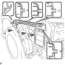 (b) Disengage the 4 claws and guide, and remove the rear bumper side retainer LH.