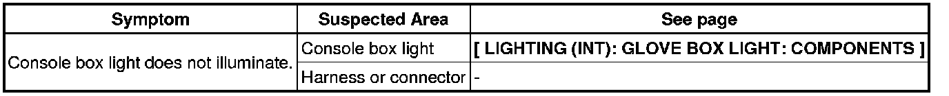 LIGHTING (INT): LIGHTING SYSTEM: PROBLEM SYMPTOMS TABLE
