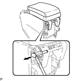 (a) Pull the No. 2 console compartment door insert in the direction indicated by the arrow to disengage the 2 claws and 3 guides, and remove the No. 2 console compartment door insert.