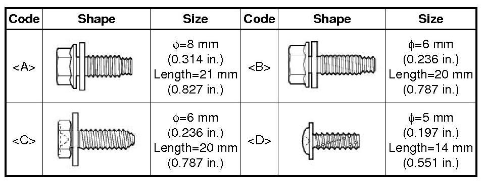 All bolts, screws and nuts relevant to installing and removing the instrument panel are shown along with their alphabet codes in the table below.
