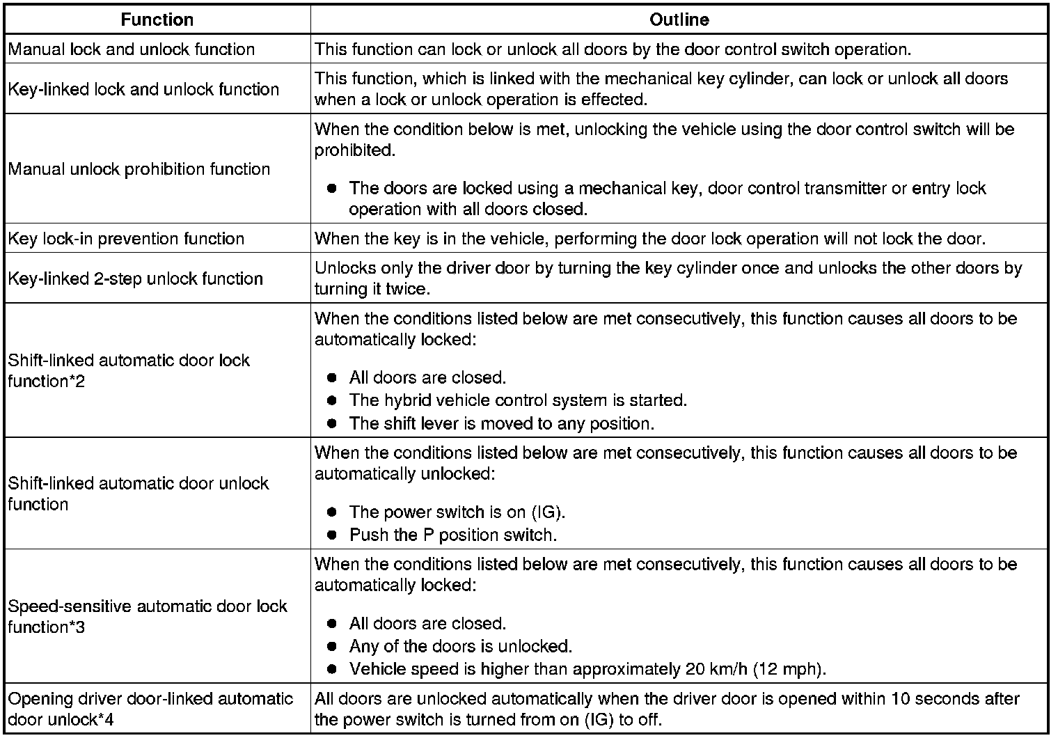 (a) This system is controlled by the main body ECU (multiplex network body ECU). The main body ECU (multiplex network body ECU) outputs signals to each door lock motor. The power door lock control system has the following functions: