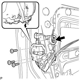 (c) Slide the front door lock assembly downward, and remove the front door lock assembly and cables as a unit.
