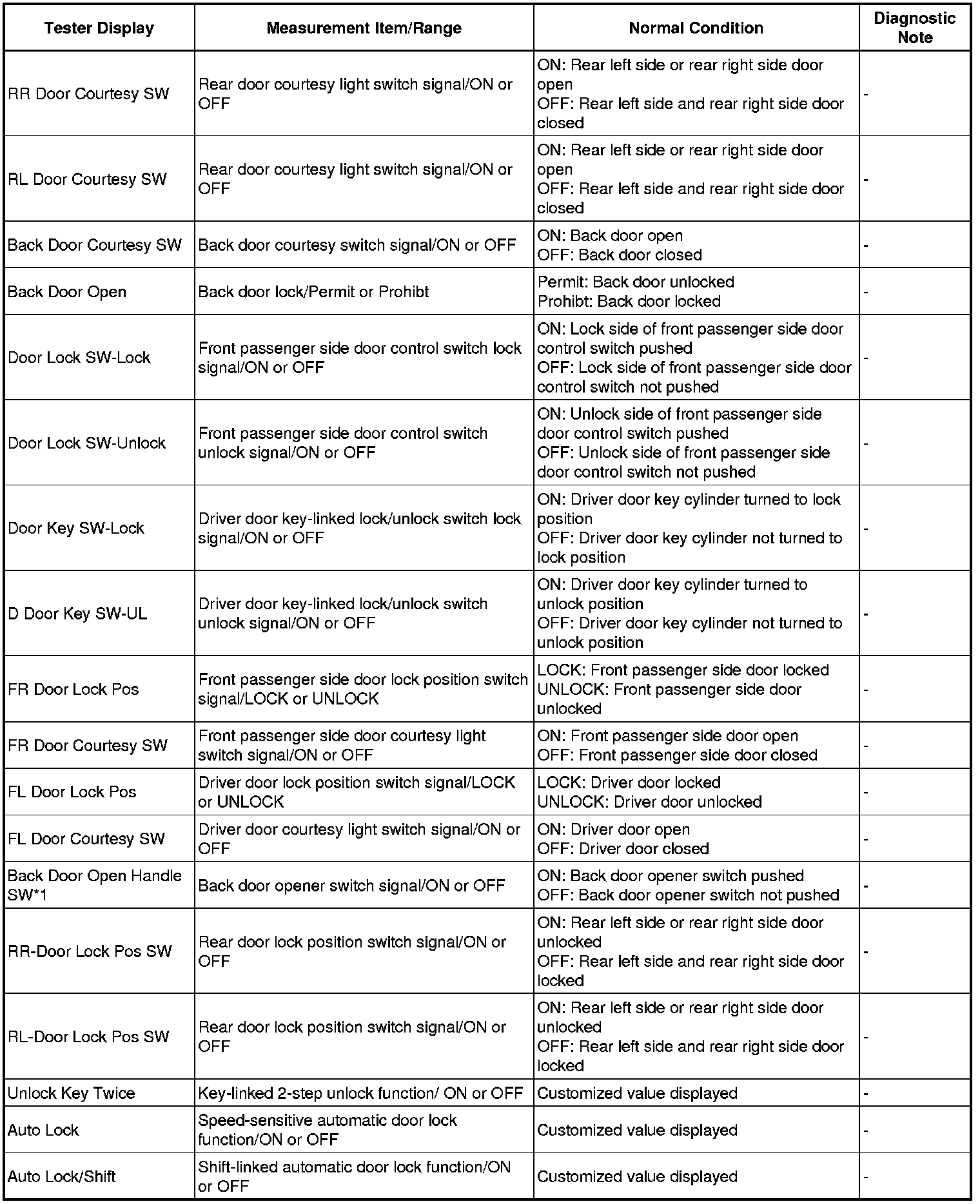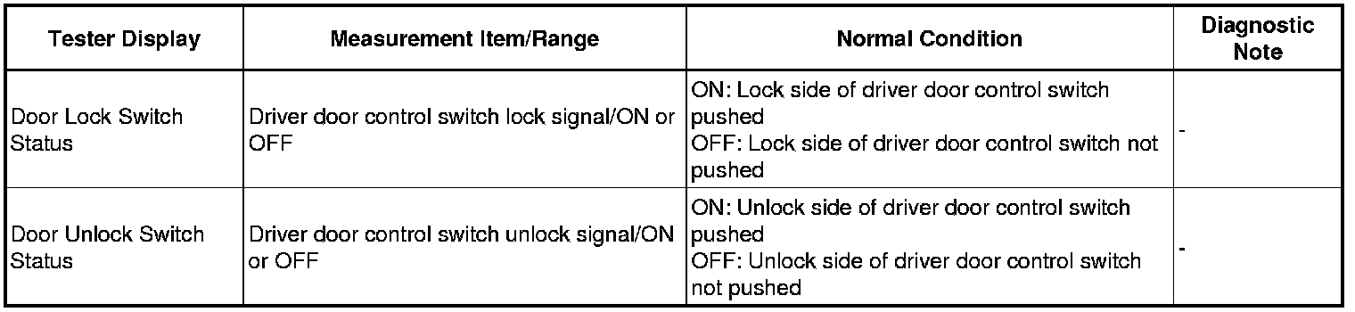 DOOR LOCK: POWER DOOR LOCK CONTROL SYSTEM: DATA LIST / ACTIVE TEST