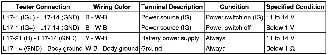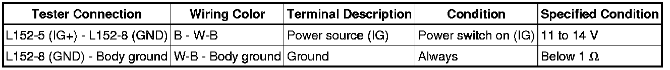 If the result is not as specified, there may be a malfunction in the wire harness.