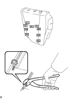 (a) Using hog ring pliers, install the separate type rear seatback cover RH to the separate type rear seatback pad RH with 9 new hog rings.