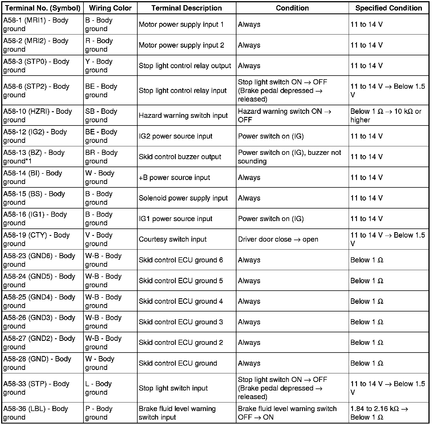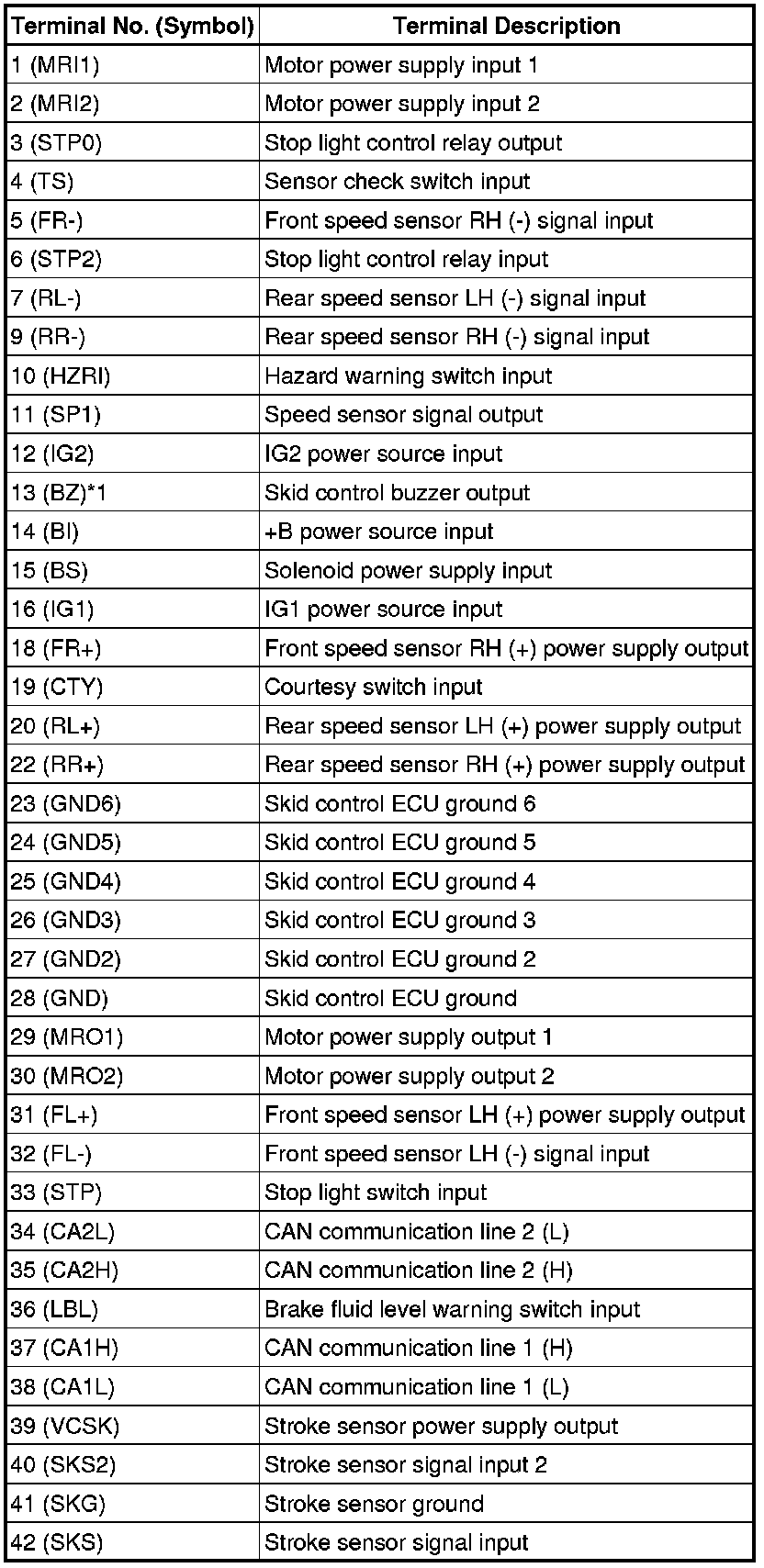 BRAKE CONTROL / DYNAMIC CONTROL SYSTEMS: ELECTRONICALLY CONTROLLED BRAKE SYSTEM: TERMINALS OF ECU