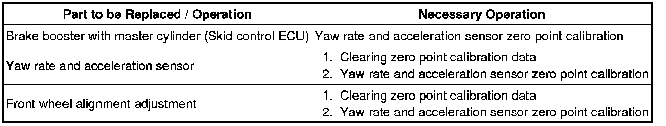 (a) After replacing any VSC related components or performing front wheel alignment adjustment, clear and read the sensor calibration data.