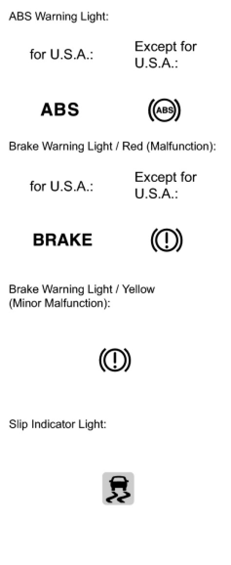 * The ABS warning light comes on for 3 seconds every time the preceding brake pedal operation is performed.