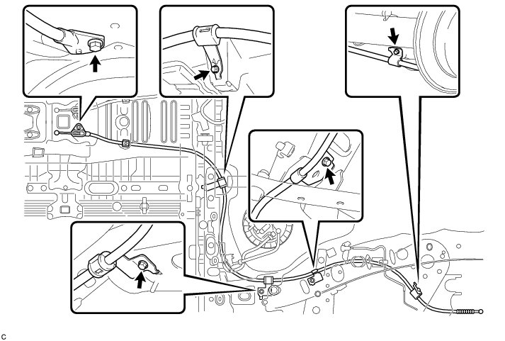 (a) Install the No. 3 parking brake cable assembly with the 5 bolts.