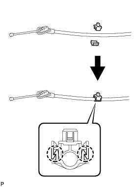 (d) Engage the clamp to install the No. 2 parking brake cable clamp.