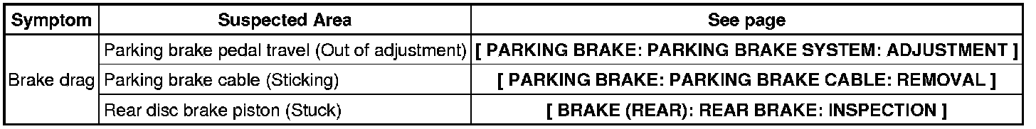 PARKING BRAKE: PARKING BRAKE SYSTEM: PROBLEM SYMPTOMS TABLE