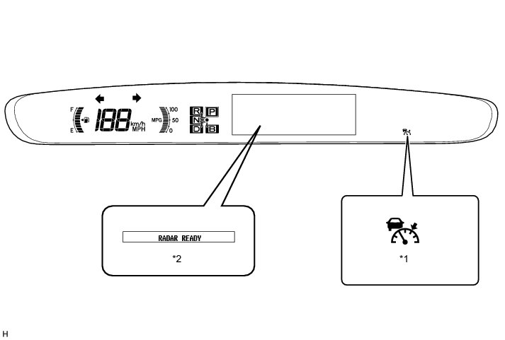 * The vehicle-to-vehicle distance control mode is always selected when starting up the dynamic radar cruise control system (cruise main indicator light and "RADAR READY" indicator comes on).